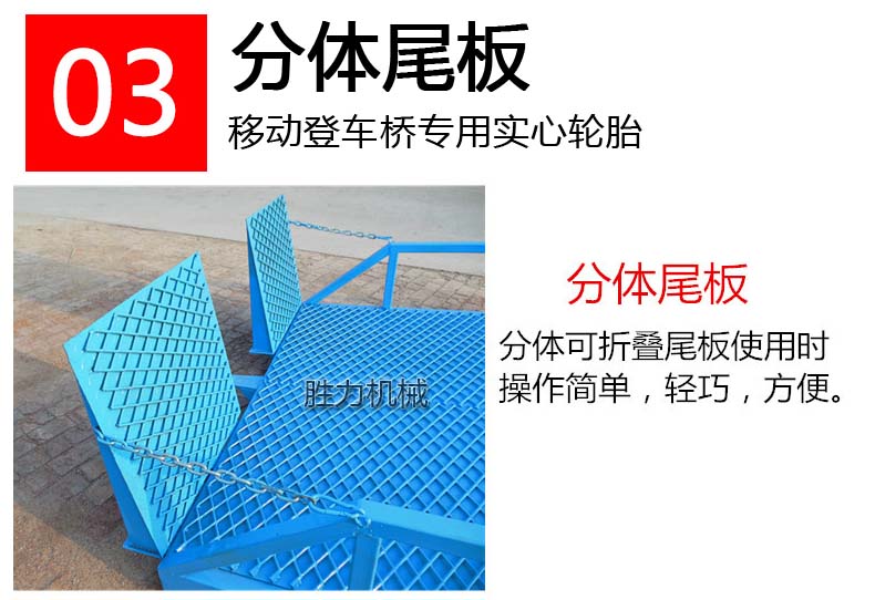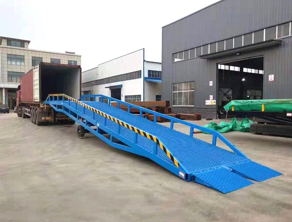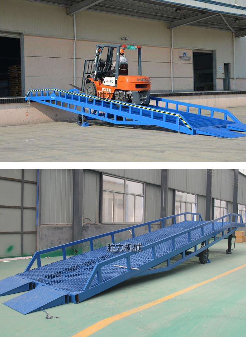 移動登車橋也被稱作叉車裝卸專用平臺,是裝卸貨物的專用液壓設備,設備帶有移動輪,可隨時移動到裝卸地點。移動登車橋根據(jù)額定載重量可分為6噸、8噸、10噸、12噸、15噸,設備總長11米,帶有坡度,叉車等搬運車輛可通過移動登車橋的坡度和高度直接駛入貨車內(nèi)部進行裝卸貨物作業(yè),在提高裝卸作業(yè)效率的同時又能充分保障作業(yè)安全。移動登車橋無需外接電源,可通過手壓泵做動力進行能設備高度的調(diào)整,可以充分適應各種不同高度的貨車。移動登車橋加快裝卸貨物的速度,減少勞動力,為企業(yè)獲取更大的經(jīng)濟效益。