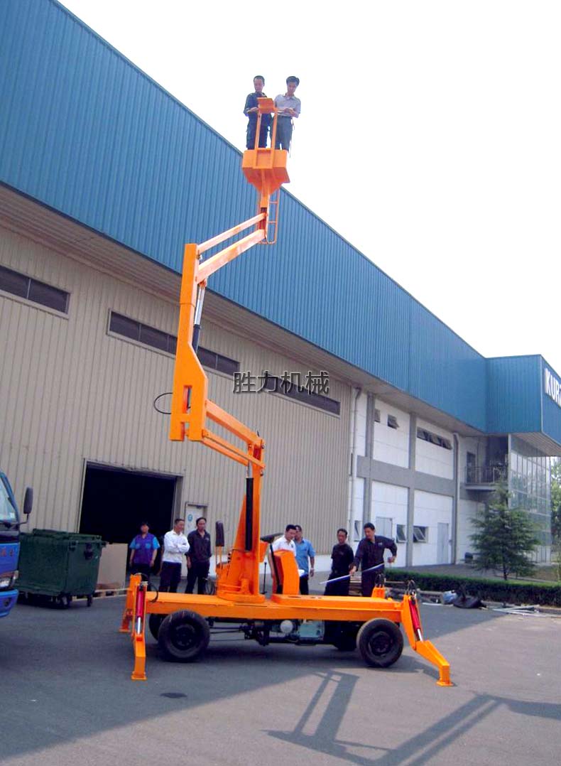 移動(dòng)曲臂式升降平臺(tái)是由二、三節(jié)升降臂組成的高空作業(yè)平臺(tái),可懸伸作業(yè)、也可跨越障礙物在一處地點(diǎn)進(jìn)行多點(diǎn)作業(yè),它采用液壓撐腿,360度旋轉(zhuǎn)作業(yè),工作高度可達(dá)15米左右,特別適用于室外高空作業(yè)。移動(dòng)曲臂式升降平中的運(yùn)輸方式非常簡(jiǎn)單,工作人員可在平臺(tái)上通過(guò)方向盤直接把平臺(tái)駕駛到工作地點(diǎn)。它的行走與升降動(dòng)力一般為電瓶驅(qū)動(dòng)或柴油發(fā)動(dòng)機(jī)兩種,為了便于操作,柴油發(fā)動(dòng)機(jī)采用電啟動(dòng)方式。該產(chǎn)品被廣泛應(yīng)用于園林、電力、市政、攝影、路燈、廣告、交通、大型工礦企業(yè)、車站、機(jī)場(chǎng)、碼頭等行業(yè)的安裝維修及登高作業(yè)。
