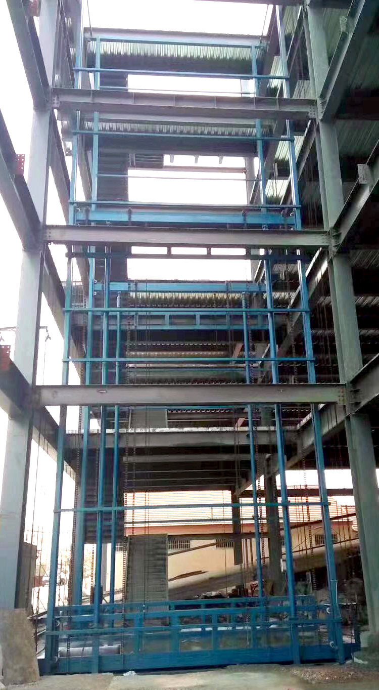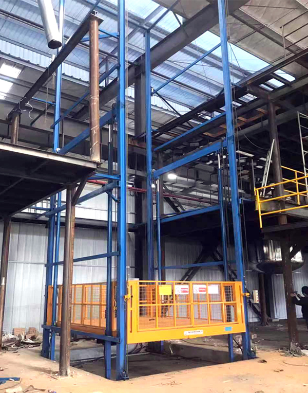 大噸位導(dǎo)軌式液壓升降貨梯是一種液壓升降機械設(shè)備,可承重100噸,主要用于多層工業(yè)廠房、倉庫、超市等樓層間的貨物上下運輸。