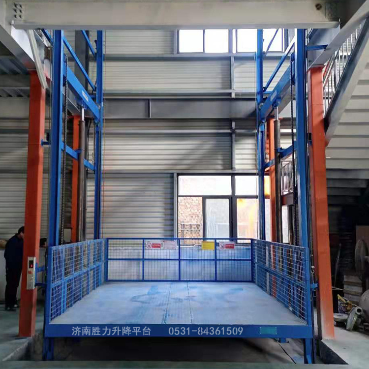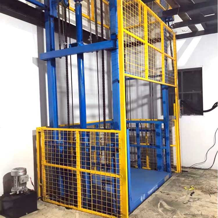 二層簡(jiǎn)易液壓貨梯梯是一種常見的液壓升降設(shè)備,也被稱為導(dǎo)軌鏈條式升降平臺(tái),平臺(tái)主要采用液壓油缸升降,通過鏈條和鋼絲繩傳動(dòng)。