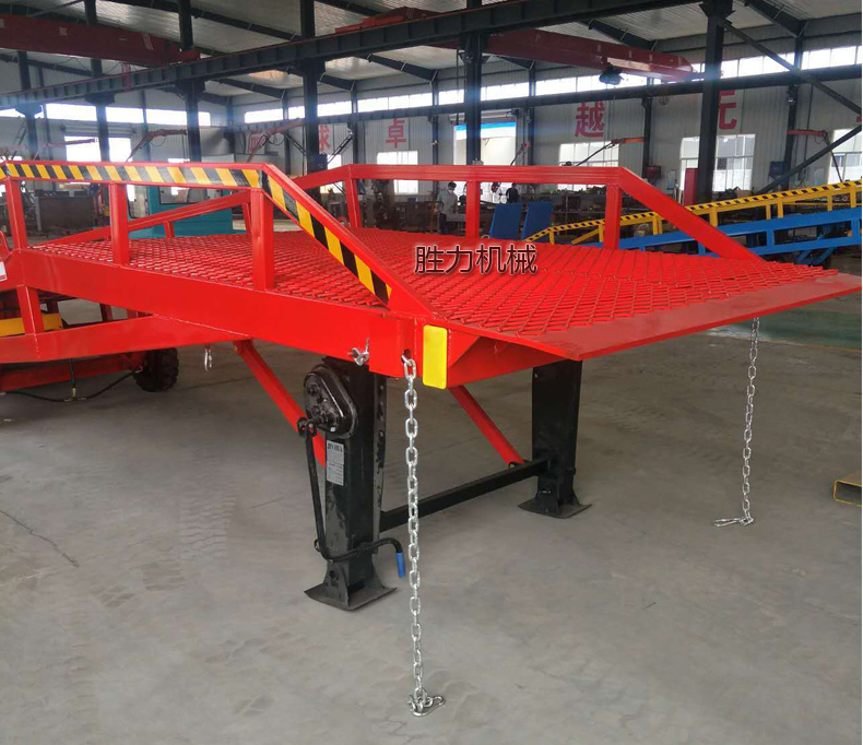 移動登車橋也被稱作叉車裝卸專用平臺,是裝卸貨物的專用液壓設備,設備帶有移動輪,可隨時移動到裝卸地點。移動登車橋根據(jù)額定載重量可分為6噸、8噸、10噸、12噸、15噸,設備總長11米,帶有坡度,叉車等搬運車輛可通過移動登車橋的坡度和高度直接駛入貨車內(nèi)部進行裝卸貨物作業(yè),在提高裝卸作業(yè)效率的同時又能充分保障作業(yè)安全。移動登車橋無需外接電源,可通過手壓泵做動力進行能設備高度的調(diào)整,可以充分適應各種不同高度的貨車。移動登車橋加快裝卸貨物的速度,減少勞動力,為企業(yè)獲取更大的經(jīng)濟效益。