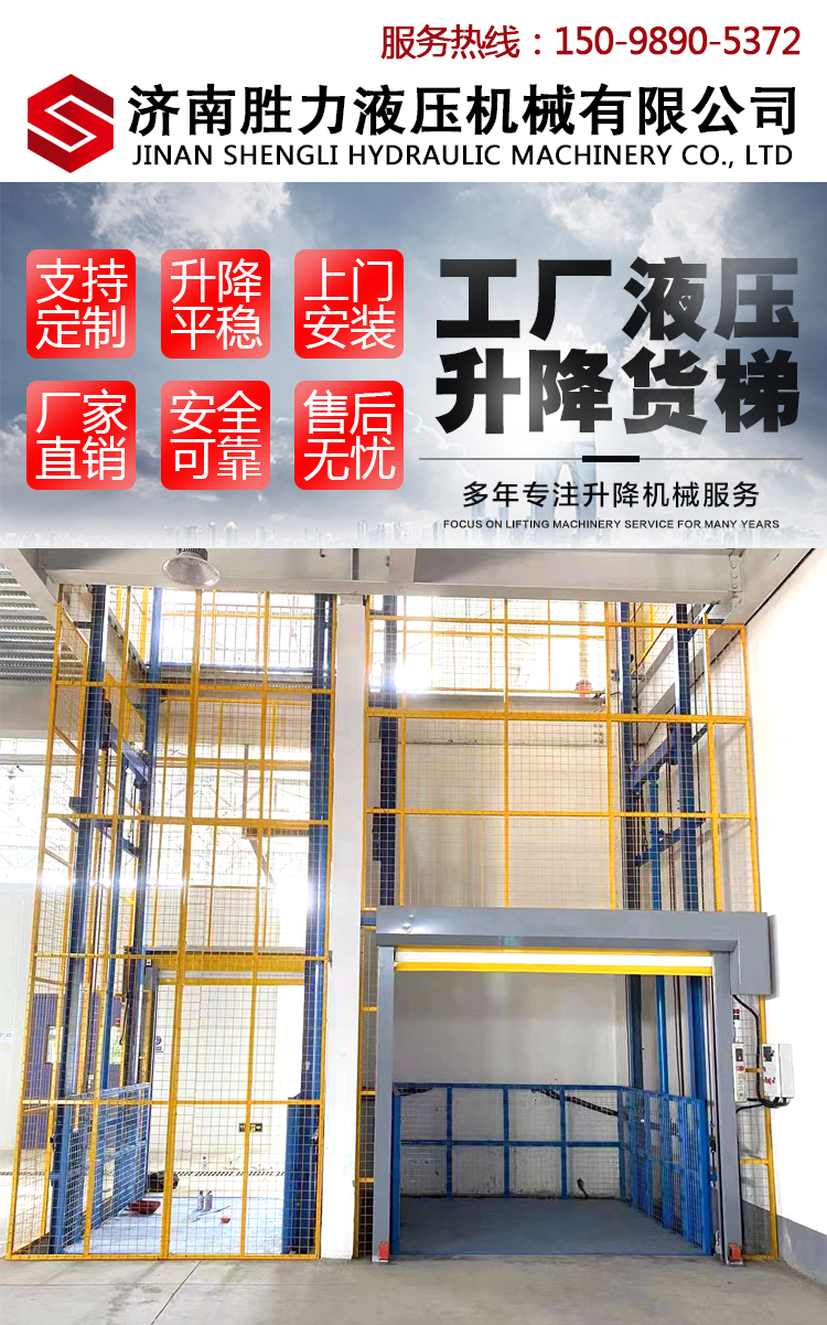 工廠液壓升降貨梯的安裝不受限制,無需地坑和井道,產(chǎn)品結(jié)構(gòu)堅(jiān)固,載重量大,升降平穩(wěn),安裝維護(hù)簡(jiǎn)單方便,是經(jīng)濟(jì)實(shí)用的低樓層間替代電梯的理想貨物輸送設(shè)備。